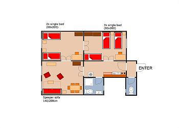 - Répartition des couchages 3 Lit jumeau, 1 Canapé convertible confortable, 1 Autre- voyez le plan, 1 Lit double