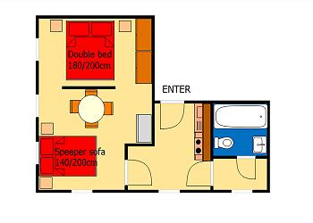 - Répartition des couchages 1 Canapé convertible confortable, 1 Lit double