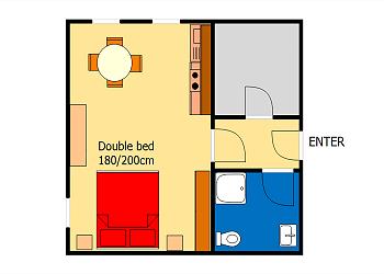 L'appartement Romance peut accueillir jusqu’à 4 personnes. Studio de 45m² au troisième étage sans ascenseur. La salle de séjour est équipée d’un coin cuisine (micro-onde etc .) Un lit jumeau confortable se trouve à l’autre bout ainsi qu’assez de place pour rajouter éventuellement un lit supplémentaire.