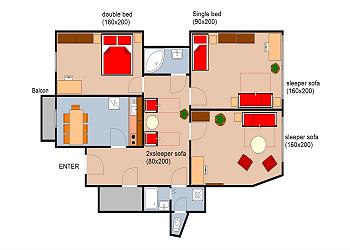 VINCENT has 3 independent bedrooms, 2 bathrooms, a hall and a spacious kitchen with a big dining table and access to a small balcony. The kitchen is well-equipped with everything you need (coffee maker, microwave, toaster etc.) to make breakfast or dinner before and after a day in town. Vincent is a non-smoking apartment with the option of smoking on the balcony. If you want to get a better idea of the apartment layout, scroll down to view the floor plan.